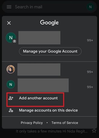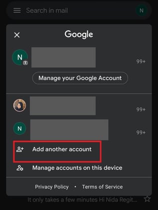1. Buka aplikasi Gmail pada hp, lalu klik ikon profil di pojok kanan atas halaman. Pilih Add another account.